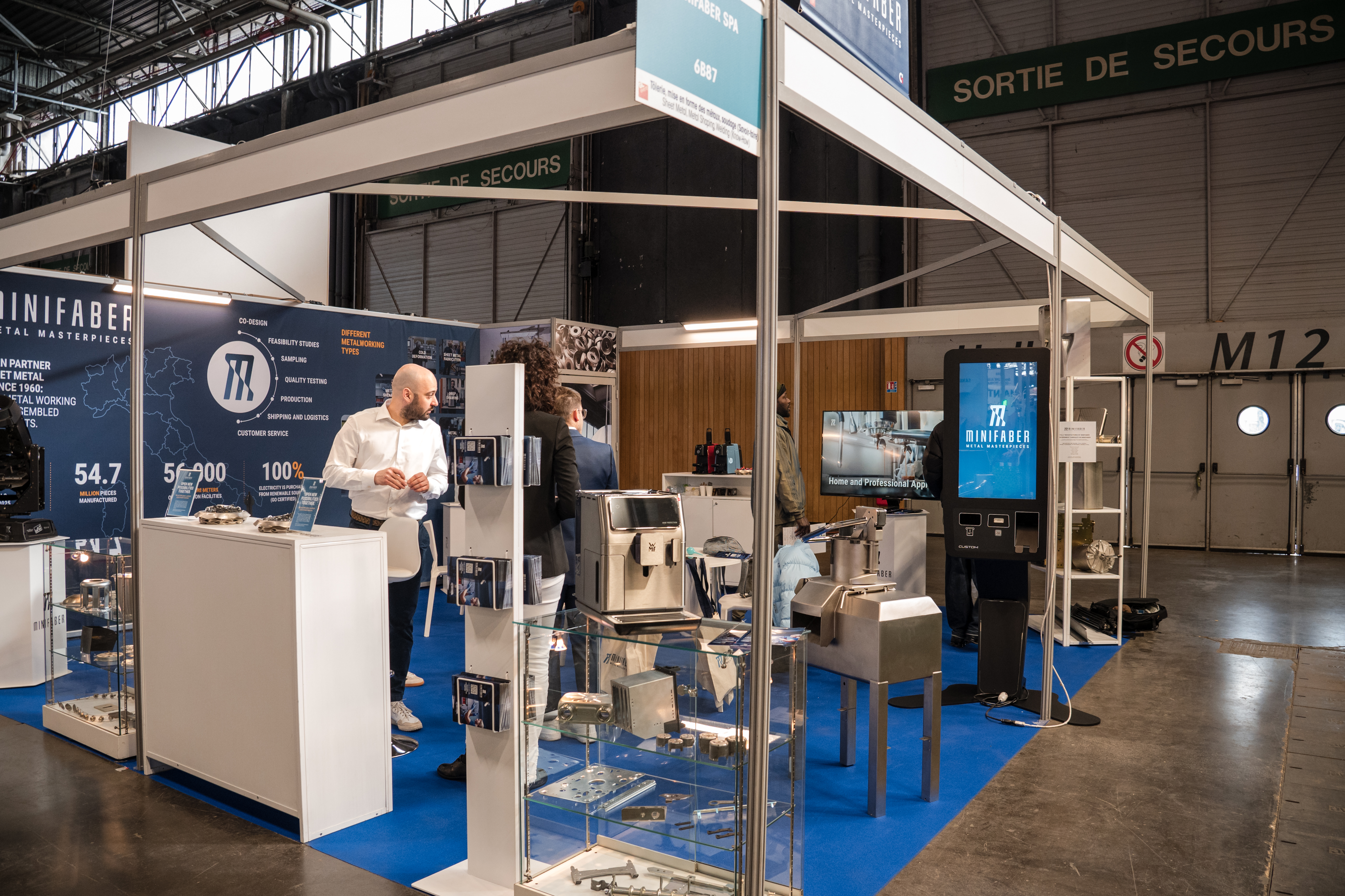 Lo stand Minifaber è stato progettato per raccontare concretamente le nostre competenze. Abbiamo portato alcuni dei nostri prodotti e abbiamo proiettato un video per raccontare l'azienda, i processi produttivi e i settori in cui operiamo.